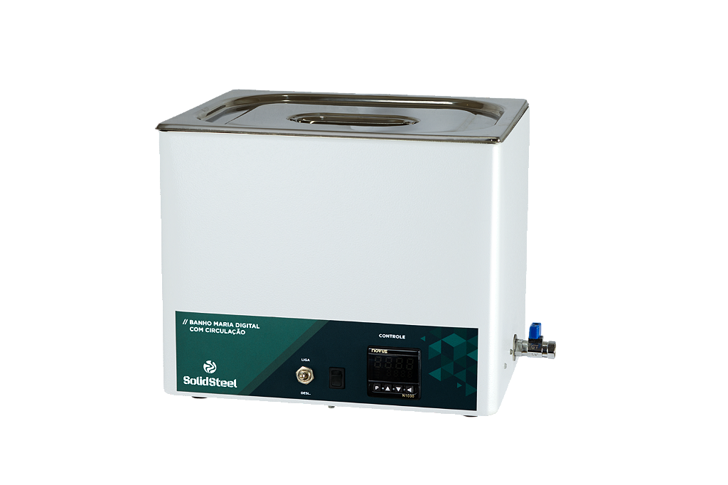 Banho-maria com circulação interna por bomba, indicado para aplicações que exigem maior homogeneidade térmica e estabilidade.